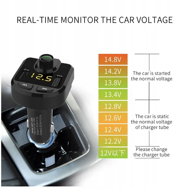 Transmiter FM Bluetooth microSD + 2x USB 3.1A