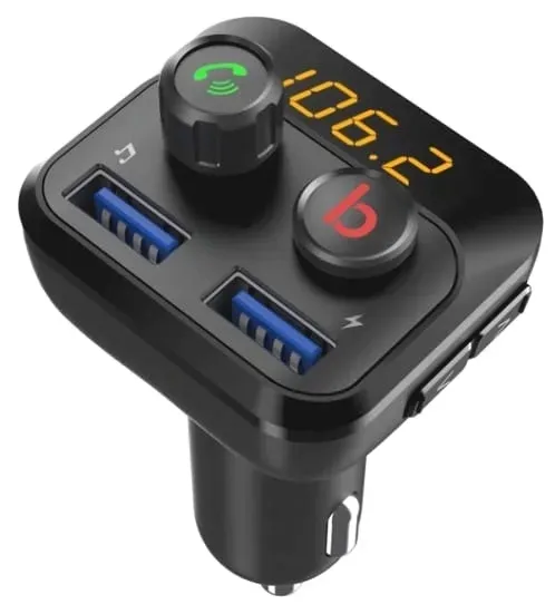 Transmiter FM jest urządzeniem umożliwiającym odtwarzanie w samochodzie muzyki z pamięci przenośnych i odtwarzaczy multimedialnych przez fale radiowe. Zasilane jest przez podłączenie do gniazda zapalniczki. Nowoczesny Transmiter FM z wyświetlaczem LED posiada wszystkie najważniejsze funkcje w jednym urządzeniu. Dzięki wbudowanemu modułowi Bluetooth możemy prowadzić rozmowy telefoniczne podczas jazdy, a dźwięk rozmowy będzie słyszany przez głośniki samochodowe. Dwa gniazda USB umożliwiają jednoczesne ładowanie telefonu i odtwarzanie muzyki. Muzykę można odtwarzać z karty micro SD