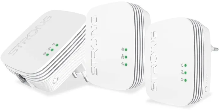 - Zawartość opakowania: 1x STRONG Kit Powerline 600 z 3 x Adaptery Powerline 600 z, 3 x Kable Ethernet, Przewodnik instalacji