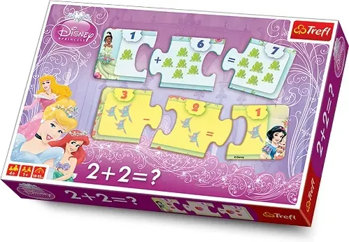Księżniczki Disneya zapraszają najmłodsze dzieci do nauki liczenia. Wspólnie z Arielką, Śnieżką, Kopciuszkiem, Tianą i Aurorą policzą przedmioty przedstawione na puzzlowych obrazkach. Dziecko uzyska prawidłowy wynik działania, dopasowując trzy właściwe klocki puzzli. Połączenie nauki z wesołą zabawą oraz duże klocki i piękna grafika zachęcą do liczenia każdego malucha. Układając kolejne elementy, dziecko rozwija zdolności manualne i ćwiczy koncentrację.