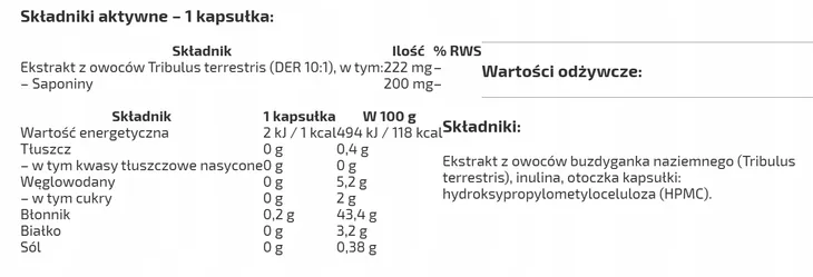 Silnie skoncentrowany ekstrakt z buzdyganka naziemnego (Tribulus terrestris) standaryzowany na 90% saponin – w 100% VEGE.
