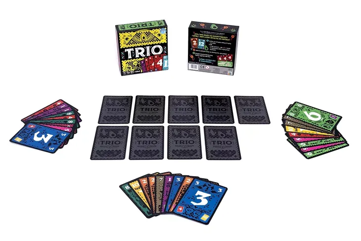Raz, dwa, trzy – trio! Odkryj dwie karty i sprawdź, czy trafisz parę. Udało się? To jeszcze nie koniec! Aby zapunktować, musisz znaleźć jeszcze jedną kartę o tej samej wartości. „Trio” to ekspresowa gra karciana, w której zgadywanie łączy się z zapamiętywaniem. Każdy z uczestników ma na ręce kilka kart uszeregowanych od najniższej do najwyższej, podczas gdy pozostałe leżą zakryte między nimi. Naszym celem jest odkrycie w jednej turze trzech kart o jednakowej wartości. Na początku wybieramy dwie: ze stołu lub z ręki dowolnego gracza (w tym drugim przypadku możemy wybierać tylko skrajne karty). Jeśli mają tę samą wartość, powtarzamy czynność, a jeśli zdobędziemy trzecią, punktujemy! W przypadku porażki karty wracają na swoje miejsce, co ułatwia zadanie kolejnym graczom – przynajmniej tym, którzy będą uważnie śledzili sytuację wokół stołu. Zawartość opakowania: • 36 kart, • instrukcja.
