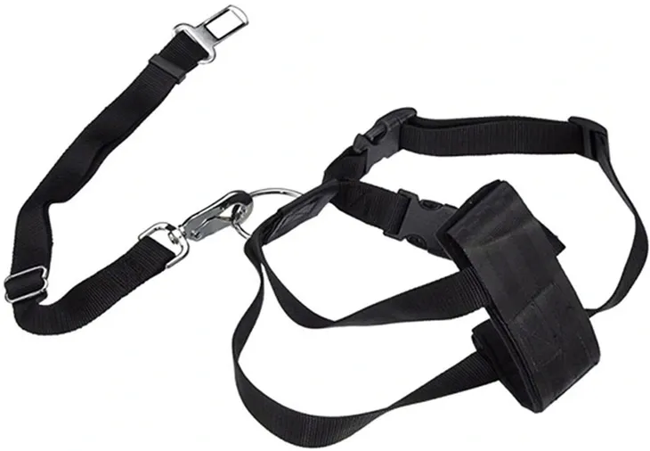 - Szelki przytrzymują psa na siedzeniu, bez możliwości zsunięcia przy gwałtownym hamowaniu.