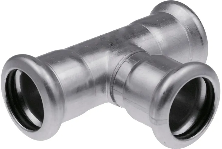 Trójnik Inox - 28 o numerze katalogowym 1609257047 w kategorii Kształtki ze stali nierdzewnej zaprasowywane, Ze stali nierdzewnej. Produkt wyprodukowany przez markę KAN-THERM, seria INOX FITTINGS.