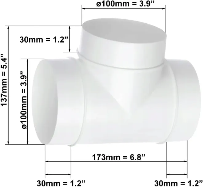 - Trójnik kanałowy, wymiary zewnętrzne: Ø 100 mm
