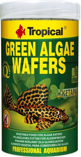 Green Algae Waffers to roślinny pokarm w postaci tonących wafelków z dodatkiem spiruliny, przeznaczony do codziennego karmienia tych gatunków ryb z rodziny Loricariidae, które w diecie wymagają znacznego udziału składników pochodzenia roślinnego i glonów, np. Sturisoma aureum, Pterygoplichthys pardalis, Panaque maccus itp.