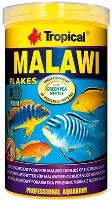 Malawi to wieloskładnikowy pokarm dla ryb w formie płatków z dużym udziałem składników roślinnych (szpinak, pokrzywa, spirulina, zarodki pszenne itp.). Linia Premium to gotowe pokarmy z wieloma atrakcyjnymi dodatkami, które zapewniają rybom m.in. doskonałą kondycję, piękne kolory i większą odporność na choroby. Linia Premium obejmuje zarówno produkty uniwersalne, jak i specjalistyczne, przeznaczone do żywienia ryb o szczególnych wymaganiach pokarmowych.Skład