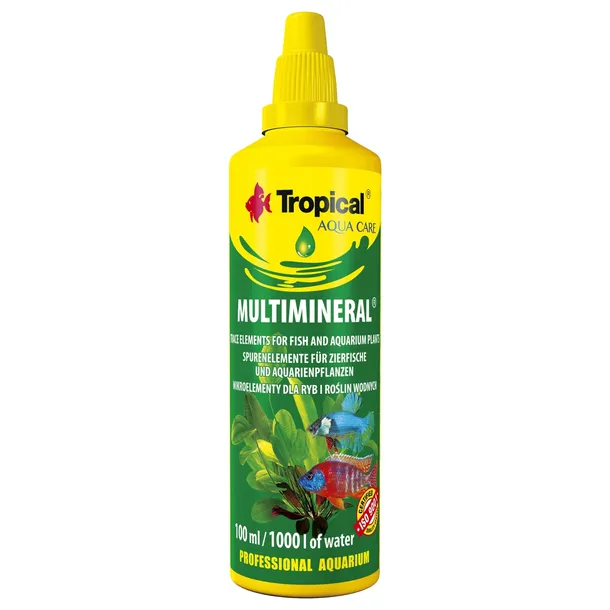 Multimineral to preparat z mikroelementami przeznaczony do uzupełniania wody akwariowej niezbędnymi pierwiastkami śladowymi. Pojemność 100ml.