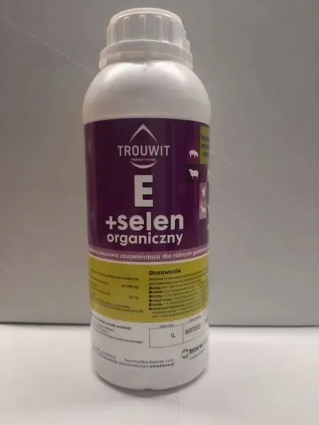 Mieszanka paszowa uzupełniająca zapewniająca fizjologiczny wzrost i rozwój mięśni, korzystnie wpływa na mięsień sercowy i wątrobę. Pozytywnie wpływa na właściwości naczyń krwionośnych, nabłonków i błon śluzowych. Wspiera funkcje rozrodcze i wspomaga prawidłowy metabolizm nienasyconych kwasów tłuszczowych. Użyty w produkcie selen organiczny (czysta selenometionina) to najlepiej biodostępna dla zwierząt znana forma selenu. Synergiczne połączenie witaminy E z selenem organicznym ma silne działanie przeciwutleniające i wzmacniające układ odpornościowy. Wspomaga ochronę przed zatruciami metalami ciężkimi. Trouwit E+Selen organiczny obniża zawartość komórek somatycznych w mleku, poprawia parametry tuczu i jakość mięsa oraz podnosi skuteczność zapłodnień jaj i przeżywalność zarodków.