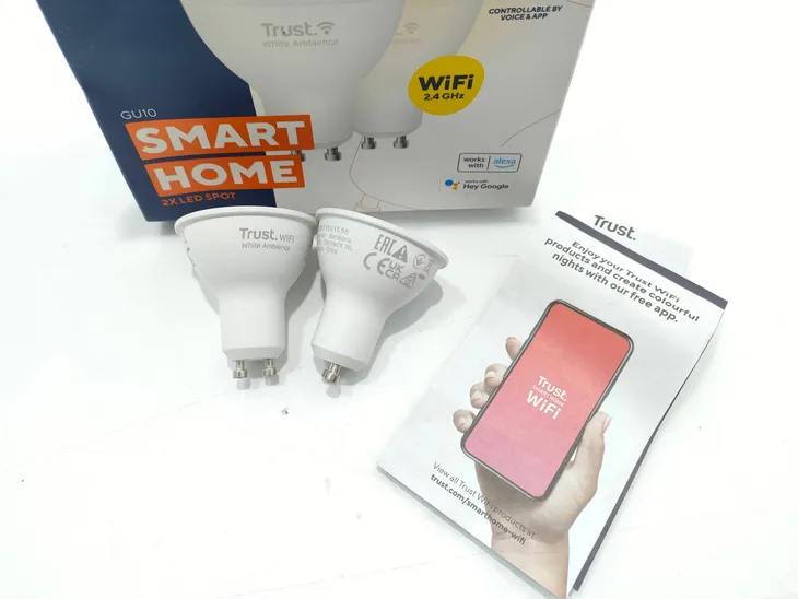 - NIE WYMAGA HUBA: Jeśli masz WiFi, możesz sterować oświetleniem za pomocą smartfona. Dodaj tę inteligentną lampę LED (GU10) w bezpłatnej aplikacji Trust WiFi, a następnie używaj smartfona/tabletu jako pilota.