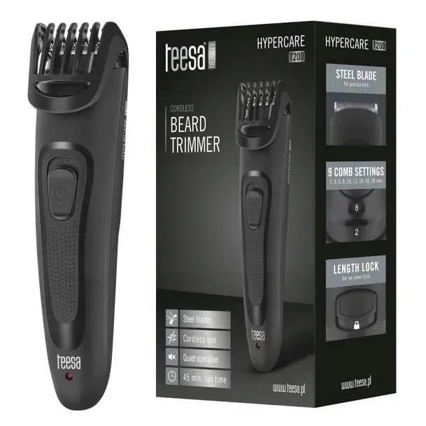 Teesa HYPERCARE to wysokiej jakości trymer, który pozwoli Ci w prosty sposób utrzymać nienaganny wygląd brody. Dzięki temu urządzeniu stworzysz własny, unikalny styl, który sprawi, że zawsze będziesz czuł się świetnie.