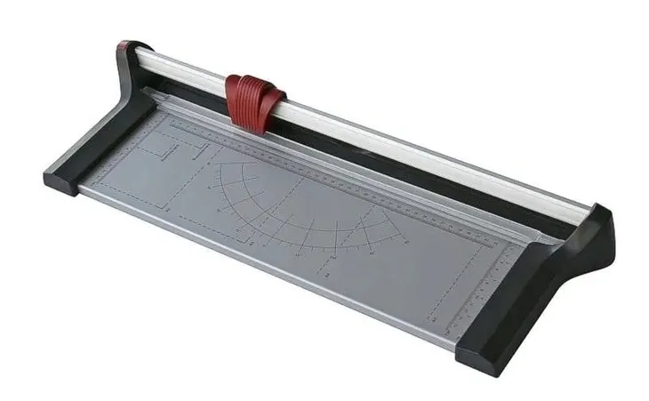 Bardzo dobry, tani trymer biurowy z listwą dociskową, długim roboczym blatem z szablonami różnych formatów. Format A3 oraz A2 po krótszym boku. Trymer posiada solidną podstawę.