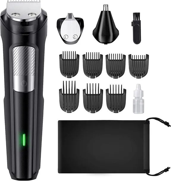 - Wielofunkcyjny trymer do brody dla mężczyzn - Pojedynczy trymer do brody dla mężczyzn, który może usuwać/przycinać włosy, brodę, nos, uszy i inne włosy na ciele. Wyposażony w trzy wymienne głowice (maszynka do włosów w normalnym rozmiarze, precyzyjny trymer, trymer do uszu i nosa). Trymer do brody oferuje 6 nasadek grzebieniowych (1 mm/3 mm/5 mm/7 mm/9 mm/12 mm/16 mm) do różnych długości i stylów włosów. Idealnie nadaje się do cięcia Buzz Cut, Crew Cut i wielu innych.