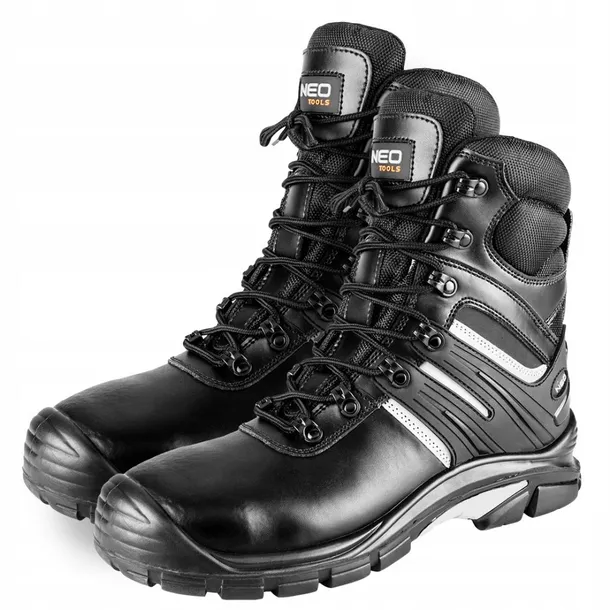 ✔️ Trzewiki robocze S3 SRC, rozmiar 39, 82-175-39 marki NEO to wysokie trzewiki robocze w klasie S3 SRC, wyposażone w dwumateriałową cholewkę ze skóry pokrytej poliuretanem (action smooth lather) i tkaniną oxford, metalowe szlufki oraz elementy odblaskowe. Kompozytowy podnosek zapewnia ochronę przed uderzeniami z energią równą 200 J, a kevlarowa wkładka antyprzebiciowa chroni spód stopy. Buty posiadają zabudowaną piętę, profilowany tylnik, wzmacniany zapiętek, dwumateriałową podeszwę oraz odporność na oleje, benzynę i inne rozpuszczalniki organiczne. Charakteryzują się właściwościami antyelektrostatycznymi. Przepuszczalność i absorbcja wody w części piętowej jest zgodna z klasyfikacją obuwia bezpiecznego zgodnie z normą EN ISO 20345. Buty wyróżnia odporność na poślizg na podłożu ceramicznym pokrytym roztworem laurylosiarczanu sodu (SLS) oraz na podłożu ze stali pokrytym glicerolem. Trzewiki dostępne są w wielu rozmiarach.