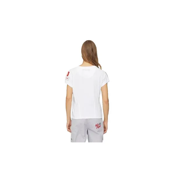 T-SHIRT DAMSKI AERONAUTICA MILITARE - t-shirt damski włoskiej marki Aeronautica Militare. Naszywki na przodzie oraz rękawach poświęcone zostały włoskiemu lotnictwu.