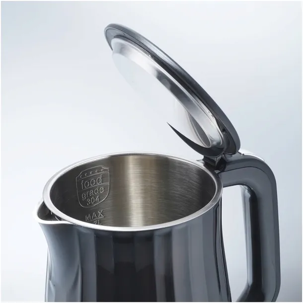 Wnętrze czajnika wykonano ze stali nierdzewnej 304, która jest odporna na korozję, higieniczna i łatwa w czyszczeniu. Obudowa z trwałego polipropylenu (PP) gwarantuje lekkość, wytrzymałość i estetyczny wygląd. Wnętrze pokrywy również pokryto stalą nierdzewną, co dodatkowo zwiększa trwałość i podkreśla jakość wykonania.