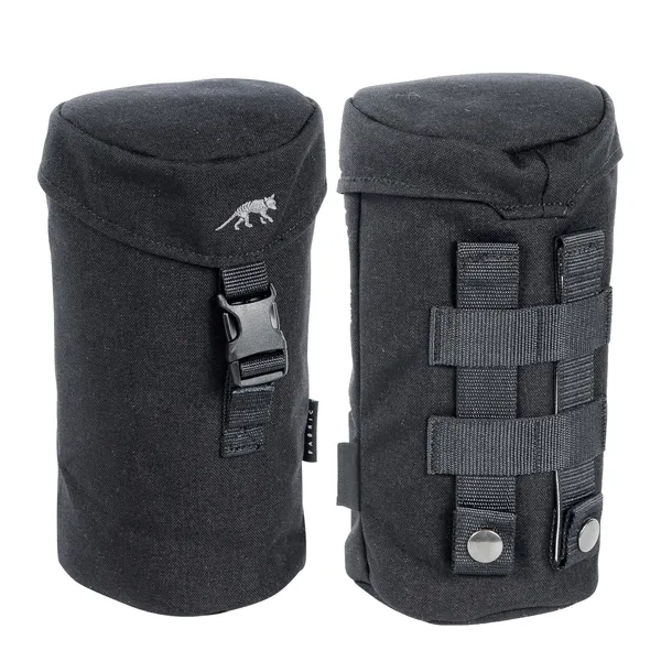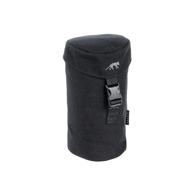 Tasmanian Tiger - Bottle Holder 1l black (7637.040. Kieszeń została wykonana z wysokiej jakości Cordury 700D i charakteryzuje się wysoką jakością wykonania, niewielkimi rozmiarami (11 x 11 x 22 cm), a także niską wagą (110 g). Pokrywa kieszeni zamykana jest na klamrę wyposażoną w system szybkiego odpinania. Jej wnętrze wypełnione jest pianką izolacyjną o grubości 5 mm. Jest kompatybilna z systemem MOLLE, który umożliwia przytroczenie jej do plecaka, pasa lub kamizelki taktycznej.