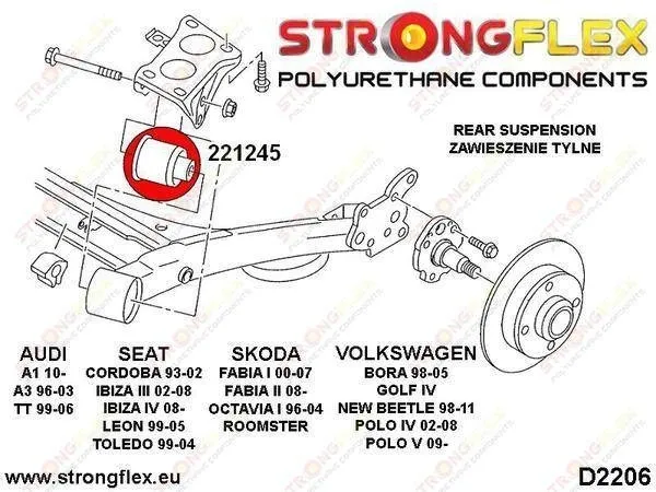 Schematy: D2206 Zawieszenie Tylne Belka Poliuretan A3 TT Ibiza Cordoba Leon Toledo VW Polo Golf Bora Jetta New Beetle