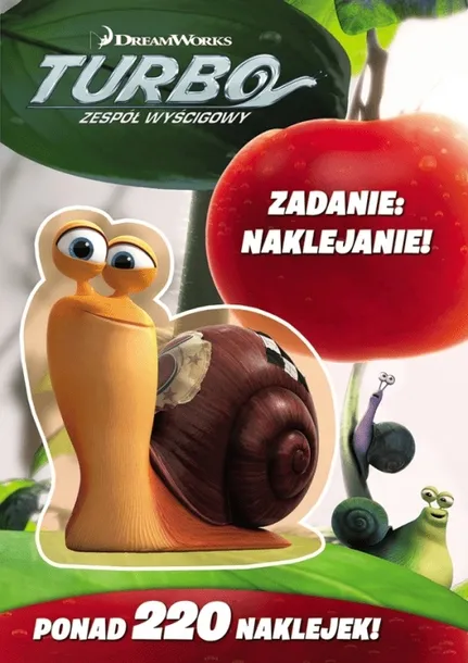 Z ogrodu warzywnego wprost na tor wyścigowy! Dołącz do Turbo i innych niezwykłych ślimaków. Poczuj zapach paliwa i smak sportowej rywalizacji na torze. Zobacz, jak radzi sobie nasz główny bohater w prawdziwych wyścigach samochodowych. Zaprezentuj swoje umiejętności, rozwiązując zadania i uzupełniając strony fantastycznymi naklejkami.