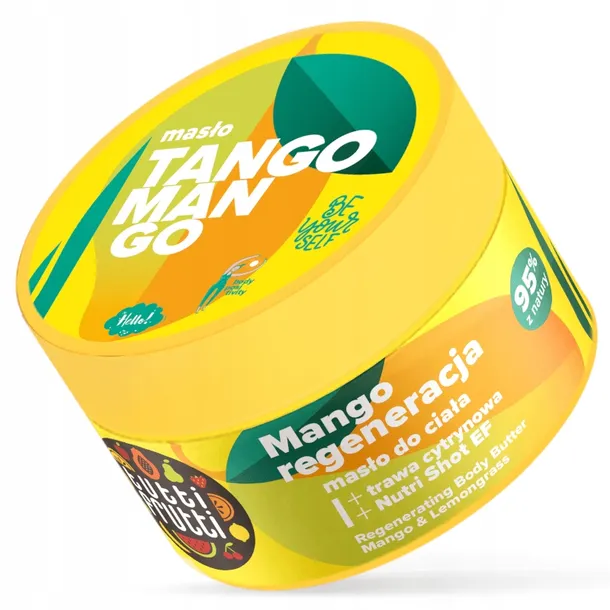 Mango odżywienie masło do ciała TANGO MANGO (mango + trawa cytrynowa + Nutri Shot EF = odżywienie). Poczuj radosne rytmy odżywienia na własnej skórze, rozkoszując się orzeźwiającą trawą cytrynową oraz soczyście regenerującym mango.