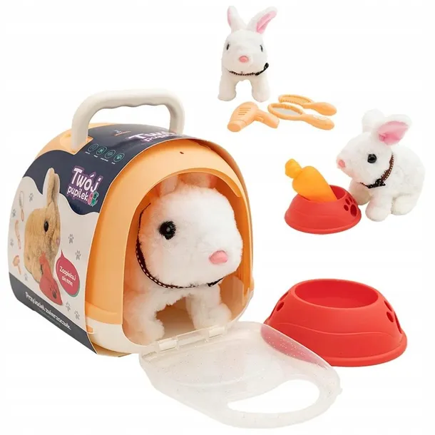 Czy Twoje dziecko marzy o własnym zwierzaku? interaktywny zajączek - Twój Pupilek to idealne rozwiązanie! Ten uroczy zajączek nie tylko kica wesoło do przodu, ale także wydaje dźwięki i rusza nosem, co sprawia, że zabawa jest jeszcze bardziej realistyczna.Zajączek w zestawie posiada liczne akcesoria: miseczkę, marchewkę, mini-suszarkę, grzebień i lusterko wszystko, czego potrzebuje mały opiekun, aby zadbać o swojego futrzanego przyjaciela.Ponadto dziecko może zabierać swojego towarzysza w dołączonym transporterze, co jest niebywałym atutem.Zabawka nie tylko jest świetnym towarzyszem przygody, ale również rozwija zdolności motoryczne i wyobraźnię dziecka.Wymiary opakowania: 20.5 x 15 x 15.5 cm.Zasilanie: bateryjne, 2 x AA (niedołączone)Minimalny wiek dziecka: 3 lata