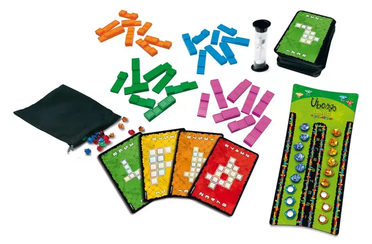 Najnowsza wersja gry „Ubongo”. Tym razem wszyscy gracze będą starali się rywalizować, budując jak najszybciej ten sam wzór pokazany na karcie, używając do tego trójwymiarowych, prostokątnych klocków. Po 9 rudach gracze sumują punkty. Wygrywa ten, kto zdobędzie ich najwięcej. Cztery poziomy trudności umożliwiają dostosowanie gry do wieku i doświadczenia graczy. Liczba graczy: od 1 do 4 Wiek: od 8 lat Czas gry: 25 minut Wymiary opakowania: 29.5 x 29.5 x 7.0 cm