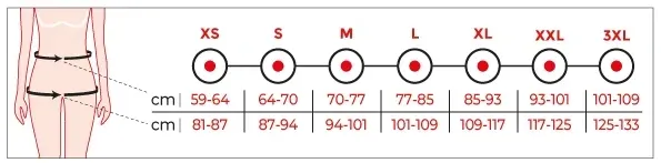 Aby dobrać odpowiedni rozmiar należy zmierzyć obwody podane w tabelce poniżej: Talia, biodra