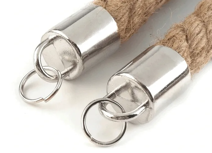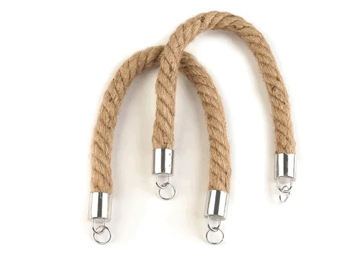 Mocne plecione uszy do toreb są wykonane ze sznurka jutowego. Ukończone są metalowymi końcówkami.