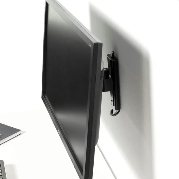 System montażu monitora z niewielkim prześwitem od ściany nie zajmuje prawie żadnej przestrzeni, a tym samym tworzy więcej miejsca na biurku. Jest również idealny do aplikacji z ekranem dotykowym.