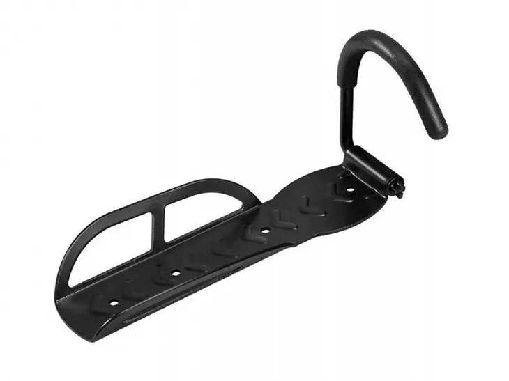 Uniwersalny wieszak ścienny na rower, idealny do przechowywania Twojego roweru w ciasnym garażu, domu lub piwnicy. Pasuje do każdego typu roweru. Uchwyt wieszaka pokryty gumową osłoną zabezpieczająca obręcz koła roweru przed uszkodzeniem. Mocowany do ściany za pomocą kołków rozporowych (w komplecie).
