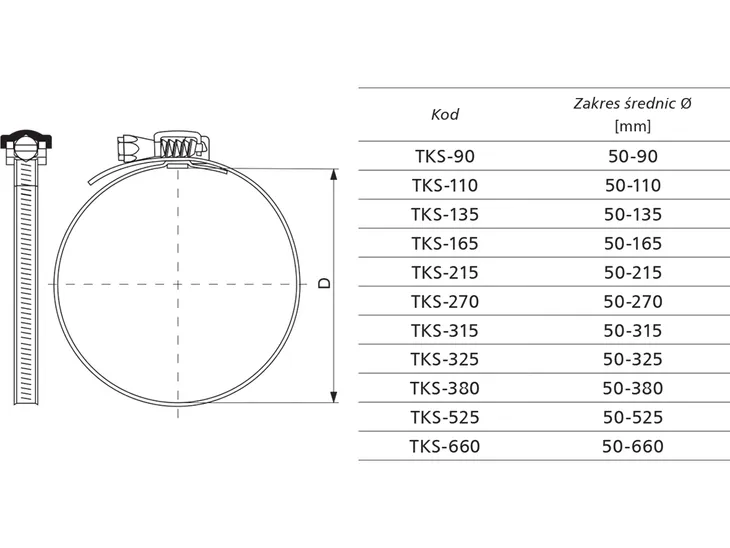 - Opaska zaciskowa, ślimakowa na przewód elastyczny 450mm (Alnor TKS-475-1)