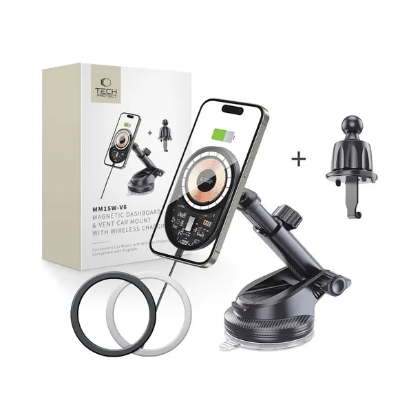 TECH-PROTECT MM15W-V6 MAGNETIC MAGSAFE DASHBOARD & VENT CAR MOUNT WIRELESS CHARGER 15W BLACK
