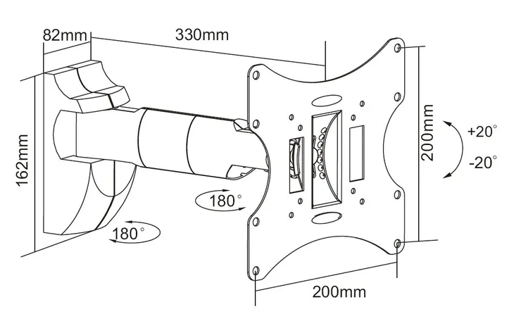 - Standard VESA: 75x75 mm; 100x100 mm; 200x100 mm; 200x200 mm;