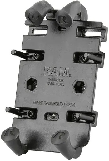 Standardowa wersja sprężynowego uchwytu na telefon RAM Quick-Grip zapewnia bezpieczne dopasowanie do różnych telefonów i innych urządzeń. Regulowane uchwyty boczne zapewniają, że w uchwycie zmieszczą się również urządzenia takie jak odbiorniki GPS i głośniki Bluetooth o podanych zgodnych wymiarach. W zestawie znajduje się zestaw dwóch nakrętek i śrub do mocowania podstawki do dowolnych komponentów RAM, które zawierają uniwersalny wzór otworów AMPS, w tym diamentowe podstawy kulkowe RAM.