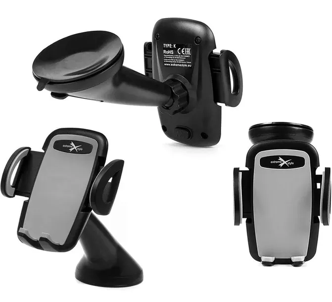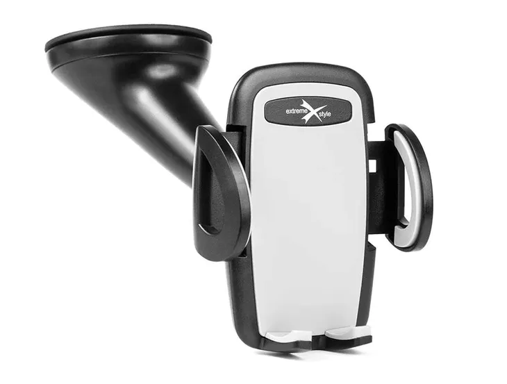 Kulowe połączenie głowicy z mocowaniem do szyby umożliwia ustawienie telefonu zarówno w poziomie jak i w pionie.