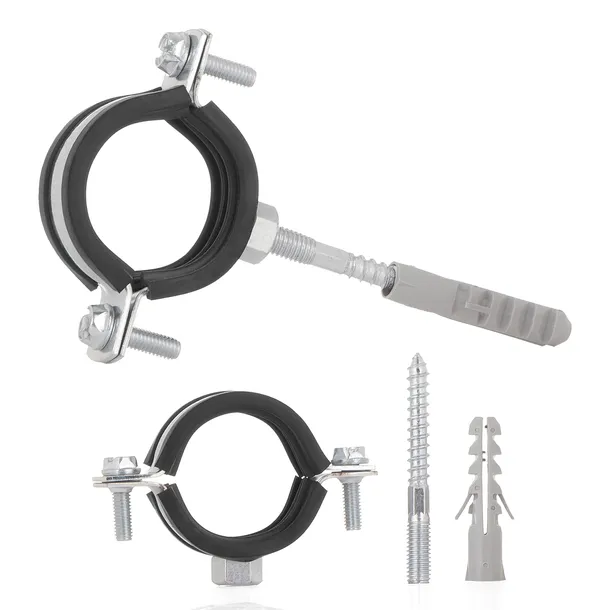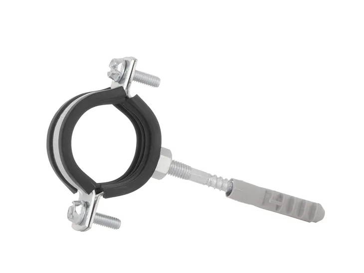 Obejma z gumą do rur z kołkiem rozporowym i śrubą dwugwintową.