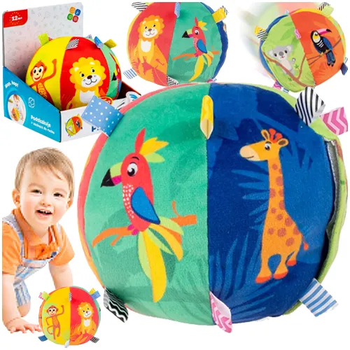 Kolorowa, materiałowa piłeczka ucieka w podskokach, zachęcając maluchy do ruchu. Zabawka ozdobiona jest obrazkami sześciu zwierzątek i materiałowymi metkami, co pozwoli rozwijać zdolności poznawcze dziecka i zachęci je do odkrywania świata za pomocą zmysłów. Naciśnij przycisk w ukrytym we wnętrzu piłki mechanizmie i rzuć piłeczkę na podłogę, a zacznie się przemieszczać, odtwarzając przy tym wesołe melodie oraz zabawne odgłosy. Produkt przeznaczony jest dla dzieci od 12 miesiąca życia.