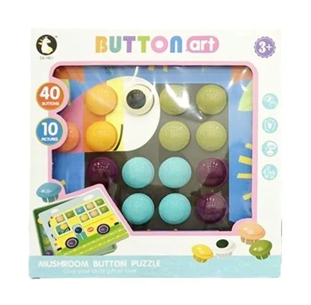 Kolorowa układanka dla dzieci. W zestawie znajduje się 40 kolorowych grzybków, 10 plansz na których układamy kolorowe grzybki, taca i 2 klipsy. Na każdej planszy jest podpowiedź gdzie należy umieścić grzybek w danym kolorze.