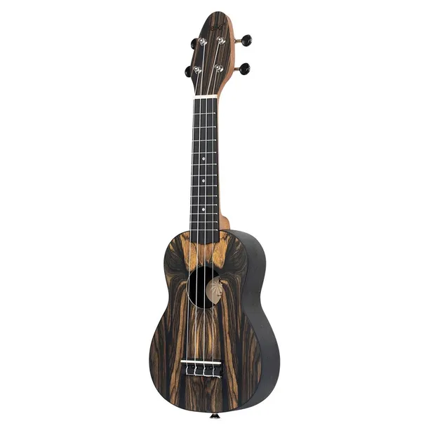 Ukulele zostało wykonane z połączenia tworzywa ABS z drewnem. Korpus to lekko łukowate tworzywo ABS a top hebanowy, dzięki temu instrument posiada mocne, wyraziste i głębokie brzmienie a zarazem bardzo odporną na uszkodzenia obudowę. Mostek i podstrunnica również wykonana jest z tworzywa a gryf to drewno Okume. Na podstrunnicy znajdują się białe markery w kształcie kropek ułatwiające orientację na gryfie. Klucze to otwarta, precyzyjna chromowana mechanika z czarnymi motylkami.