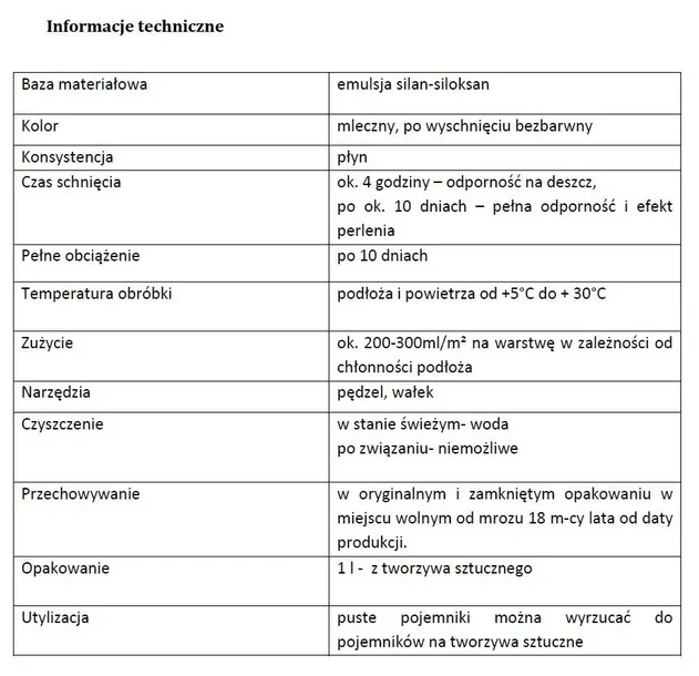 - Baza materiałowa emulsja silan-siloksan