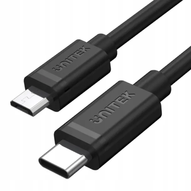 Unitek Y-C473BK to przewód USB Typ-C - micro USB, o długości 1 m, służący do ładowania i synchronizacji szeregu urządzeń takich jak latarki, rejestratory obrazu, akumulatory, aparaty, tablety graficzne, smartfony, tablety i wiele więcej. Złącze USB-C jest bezpieczne i wygodne w użyciu – jest symetryczne, czyli nie trzeba uważać którą stroną się je podłącza tak jak to było w poprzednich wersjach USB.