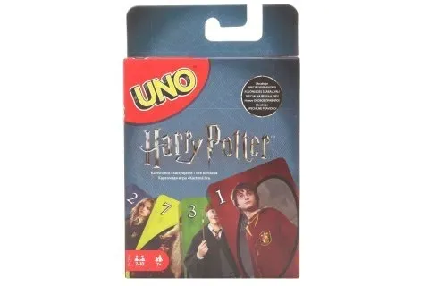 Teraz najpopularniejsze postacie z Harry'ego Pottera są częścią imprezy w UNO! Gra karciana odpowiada podstawowej wersji UNO, ale została zaprojektowana z wykorzystaniem zdjęć Hermiony, Harry'ego, Rona i innych postaci z magicznego świata Harry'ego Pottera.
