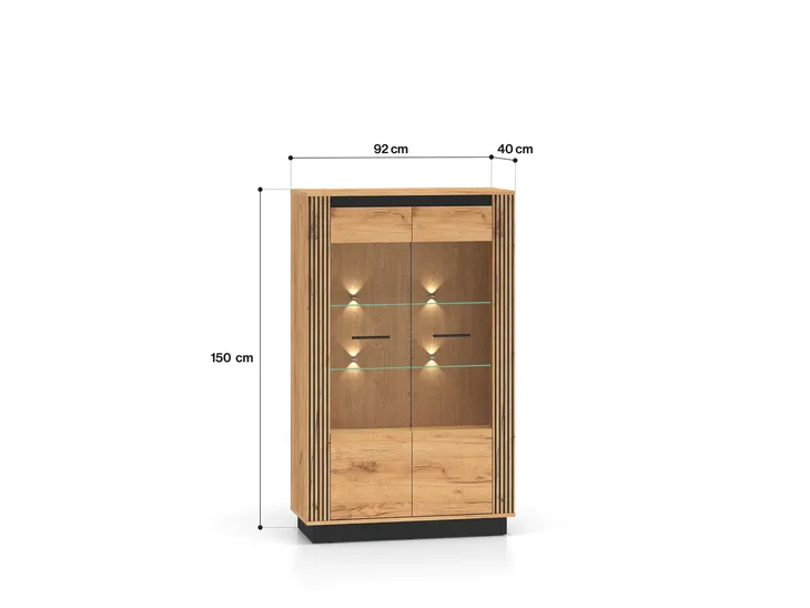 URSO to prosta ponadczasowa stylistyka, która emanuje naturalnym pięknem, tworząc harmonijne wnętrze pełne ciepła. Bryły w kolorze dębu zostały osadzone na eleganckim, czarnym cokole. Całość dopełniają wstawki MDF z czarnym frezowaniem.