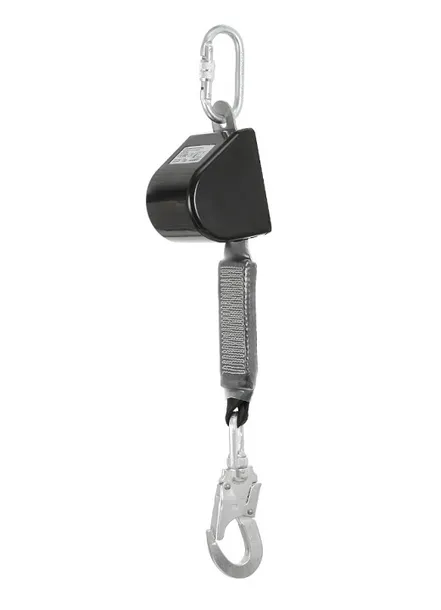 Urządzenie samohamowne do pracy w pionie. Obudowa z trzorzywa sztucznego. Maksymalna waga użytkowika 140kg. Długoś robocza maksymalna 228cm. Taśma włókiennicza o dlugości 2,25m, szerokości 47mm. Stalowe zatrzaśniki AZ011, AZ002AS.