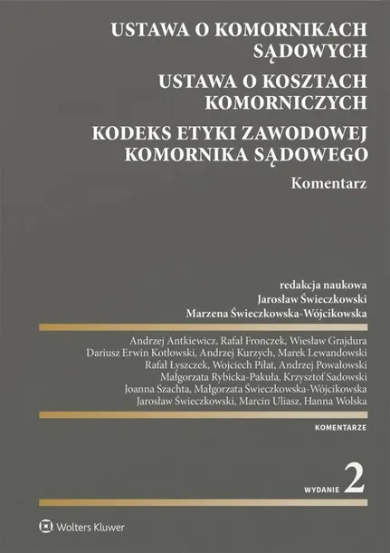 Publikacja zawiera kompleksowe omówienie przepisów: ustawy o komornikach sądowych; ustawy o kosztach komorniczych; rozporządzenia Ministra Sprawiedliwości w sprawie ramowego programu aplikacji komorniczej oraz zakresu przedmiotowego szkolenia na aplikacji komorniczej; rozporządzenia Ministra Sprawiedliwości w sprawie organizacji i przebiegu aplikacji komorniczej; rozporządzenia Ministra Sprawiedliwości w sprawie określenia szczegółowych zasad prowadzenia biurowości, rachunkowości i ewidencji operacji finansowych kancelarii komorniczych Kodeksu Etyki Zawodowej Komornika Sądowego. Publikacja przygotowana została przez praktyków prawa - komorników, asesorów komorniczych, sędziów sądów powszechnych, adwokatów i radców prawnych - przy udziale znakomitych teoretyków prawa, cenionych wykładowców uniwersyteckich. Autorzy specjalizują się w zakresie zarówno szeroko pojętego prawa cywilnego, jak i procedury cywilnej oraz prawa egzekucyjnego. Książka jest przeznaczona dla adwokatów, radców prawnych, sędziów, komorników, a także asesorów i aplikantów komorniczych. Będzie cennym źródłem wiedzy dla pracowników administracji rządowej i samorządowej, przedsiębiorców współpracujących z komornikami w toku postępowań egzekucyjnych, jak również pracowników naukowych oraz studentów prawa i administracji.