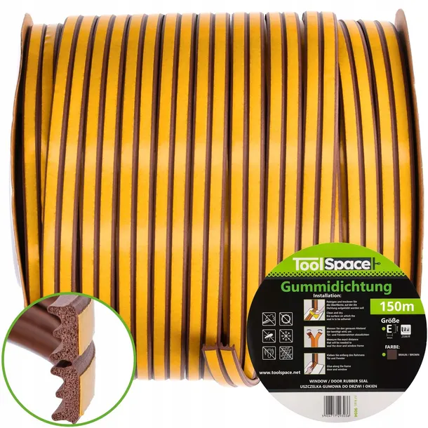Uszczelka DO OKIEN typ E brązowa, 150mb Uszczelki ToolSpace są: