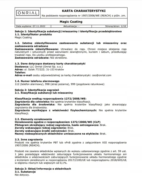 Nasz produkt posiada kartę bezpieczeństwa, która potwierdza jego zgodność z obowiązującymi standardami. Przeszedł szczegółowe badania laboratoryjne, a jego bezpieczeństwo dla zdrowia konsumenta zostało potwierdzone przez specjalistów.