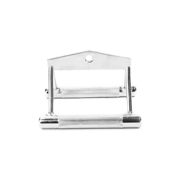 UW05 HMS to podwójny uchwyt, przeznaczony do treningu na wyciągu górnym i dolnym. Służy do ćwiczenia mięśni grzbietu, ale sprawdzi się również przy wykonywaniu ćwiczeń z połową sztangi ( druga połowa oparta o parkiet). Jej gryf idealnie wpasowuje się w środek uchwytu, co umożliwia swobodne wykonywania ćwiczenia wiosłowania połową sztangi w opadzie tułowia.