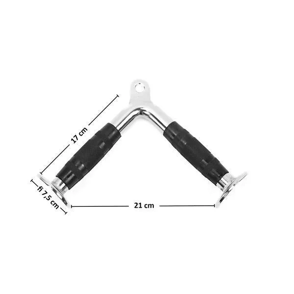 Jego trójkątny kształt umożliwia wykonanie ćwiczeń pod alternatywnym kątem do uchwytu prostego. Pozwala to na wykonanie efektywnego treningu oraz daje możliwość pełnego rozwoju całego mięśnia i wszystkich jego głów mięśniowych. Ogumowana rękojeść zapewnia pewny i komfortowy chwyt. Dzięki temu możemy skupić się na dokładnym wykonaniu ćwiczeń, nie przejmując się tym, że uchwyt wyślizgnie się z rąk. Wykonany jest z wysokiej jakości stali, co daje możliwość treningu ze znacznym obciążeniem.