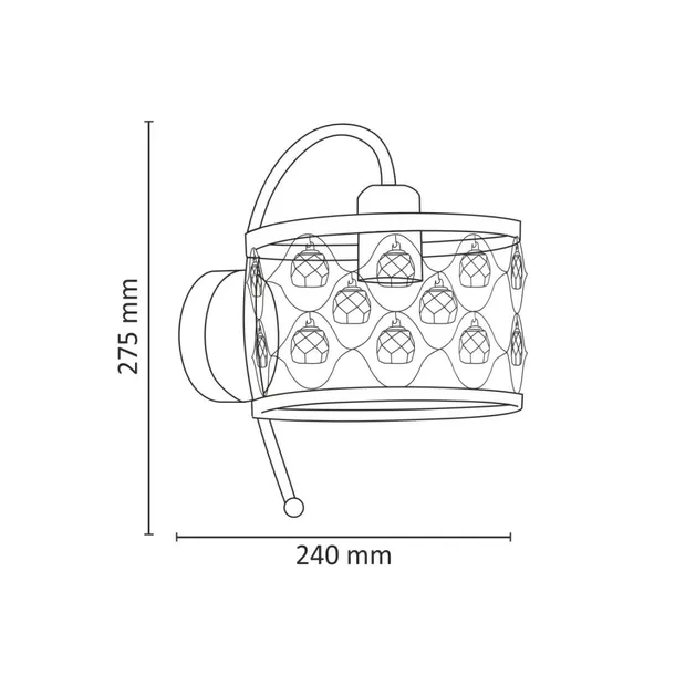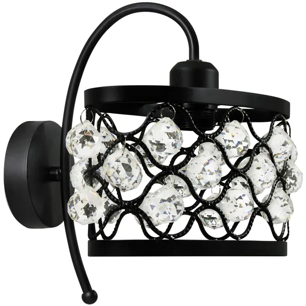 Lampa została wykonana z metalu w kolorze czarnym. Klosz lampy również zrobiony z metalu pomalowanego na czarno z delikatną plecionką z drucików i wykończony czarnymi obręczami. Pomiędzy wzorem zawieszone zostały transparentne kryształowe kuleczki. Po zapaleniu lampy, kryształki przepięknie odbijają światło, tworząc tym samym niepowtarzalny efekt wizualny.